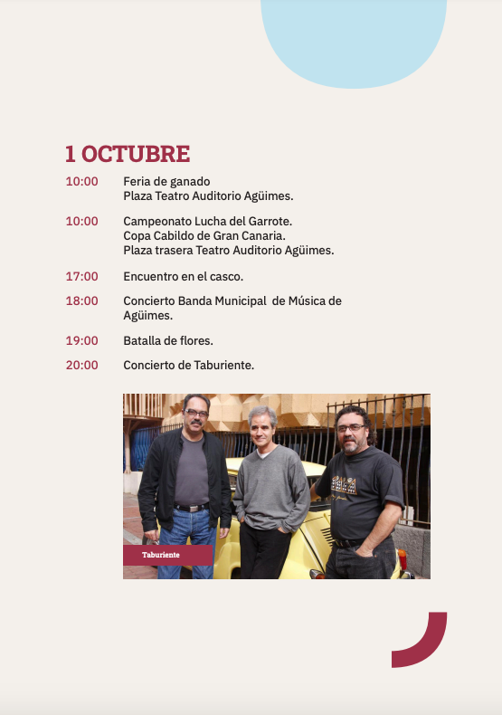 Other notable events will be the Pilgrimage of Offering to the Virgin of the Rosary (Saturday, September 30 at 18:00), the Livestock Fair (Sunday, October 1, at 10:00) or the Black Canary Pig Days. From September 15 to October 8, eight establishments in the town will offer their customers succulent gastronomic recipes based on the meat of this native breed. The festivities will also include exhibitions, festivals, dances, vernacular sports, folklore performances, children’s activities, literary presentations and concerts by artists such as Los Cantadores or Taburiente, among others.