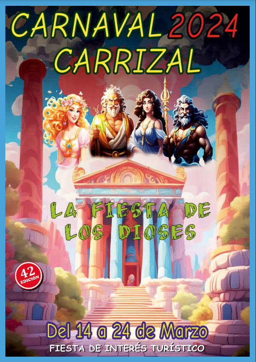 Carnival in Carriza is considered a Local Festival of Tourist Interest. The allegory this year is ”La Fiesta de los Dioses”, ”The Feast of the Gods”