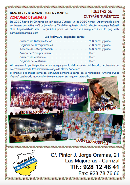 18-19 March: Murgas Contests from 20:30 to 00:00 in Plaza La Jurada.