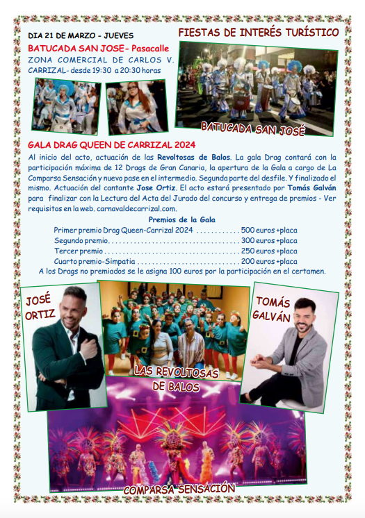 Carnival in Carrizal, in Ingenio, is celebrated between 9-23 March 2024 and considered a Local Festival of Tourist Interest.