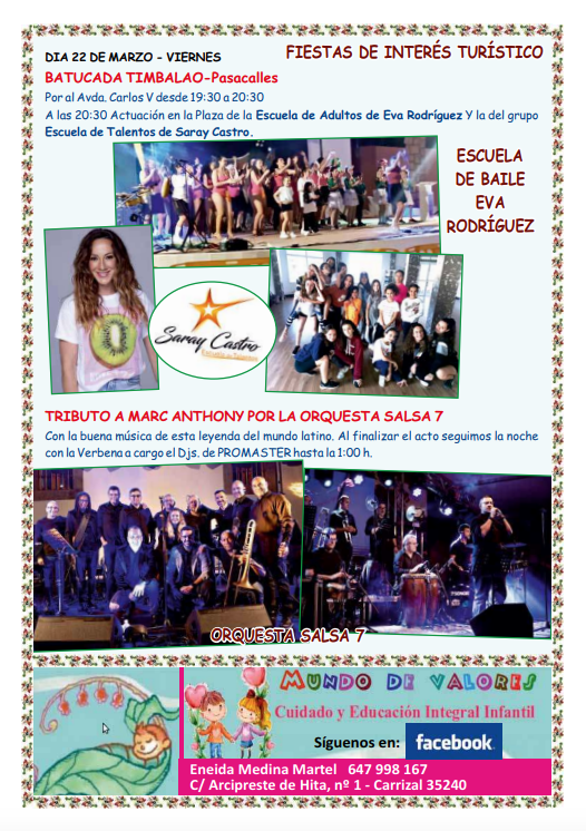 Eva Rodriguez, Acrobatics, Talent School of Saray Castro. The afternoon will end with a snack, with donated soft drinks and cake