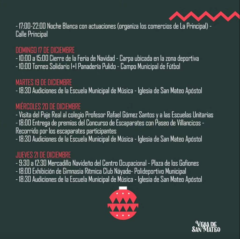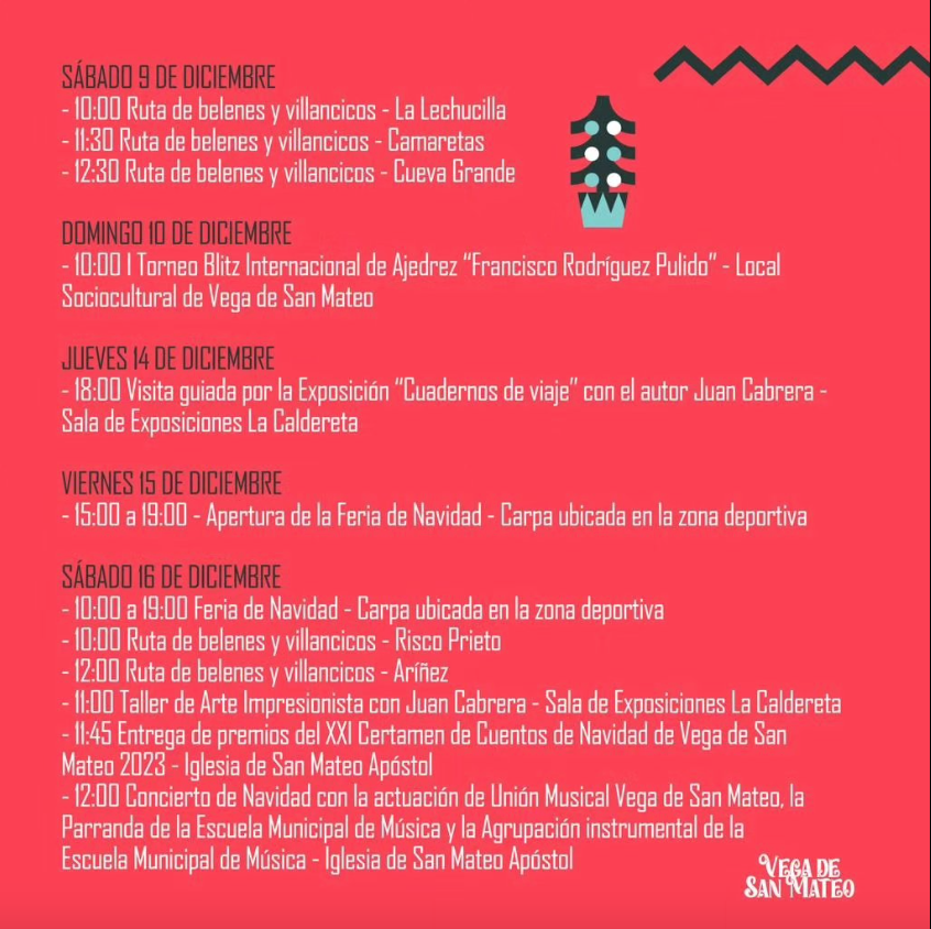 Christmas program 2023-24 for Vega de San Mateo from 1 December to 5 January.ย