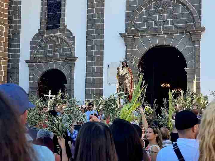 The procession continues with the image of Jesus on the donkey and travels through the streets of the town. Route: Plaza Nuestra Señora del Pino, Calle La Herrería, Calle Nueva, Calle Del Riego, Real de la Plaza, and returns to Plaza Nuestra Señora del Píno.