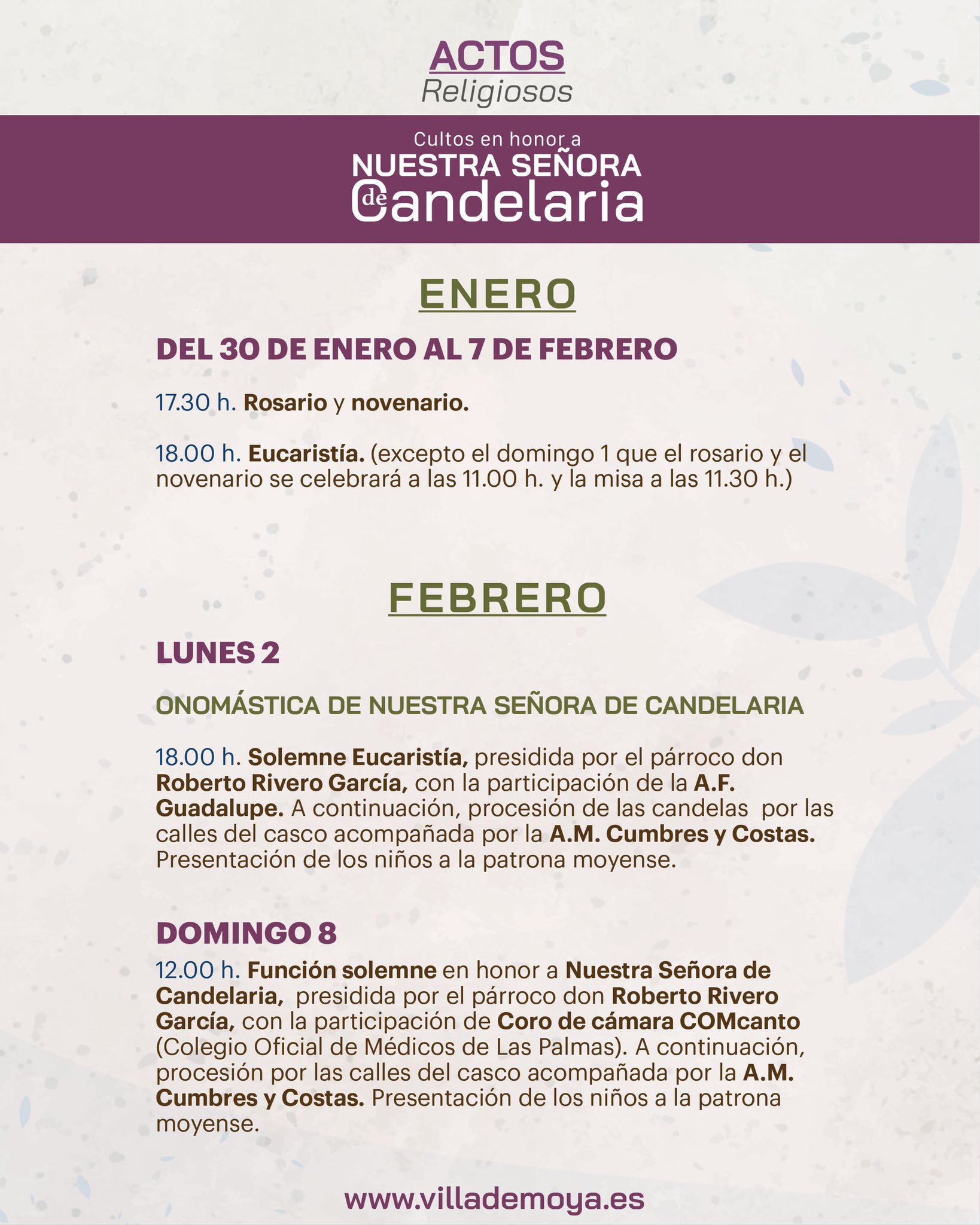 Villa de Moya is celebrating Patron Saint festivities in honour of Our Lady of Candelaria between 27 January and 8 February 2026.