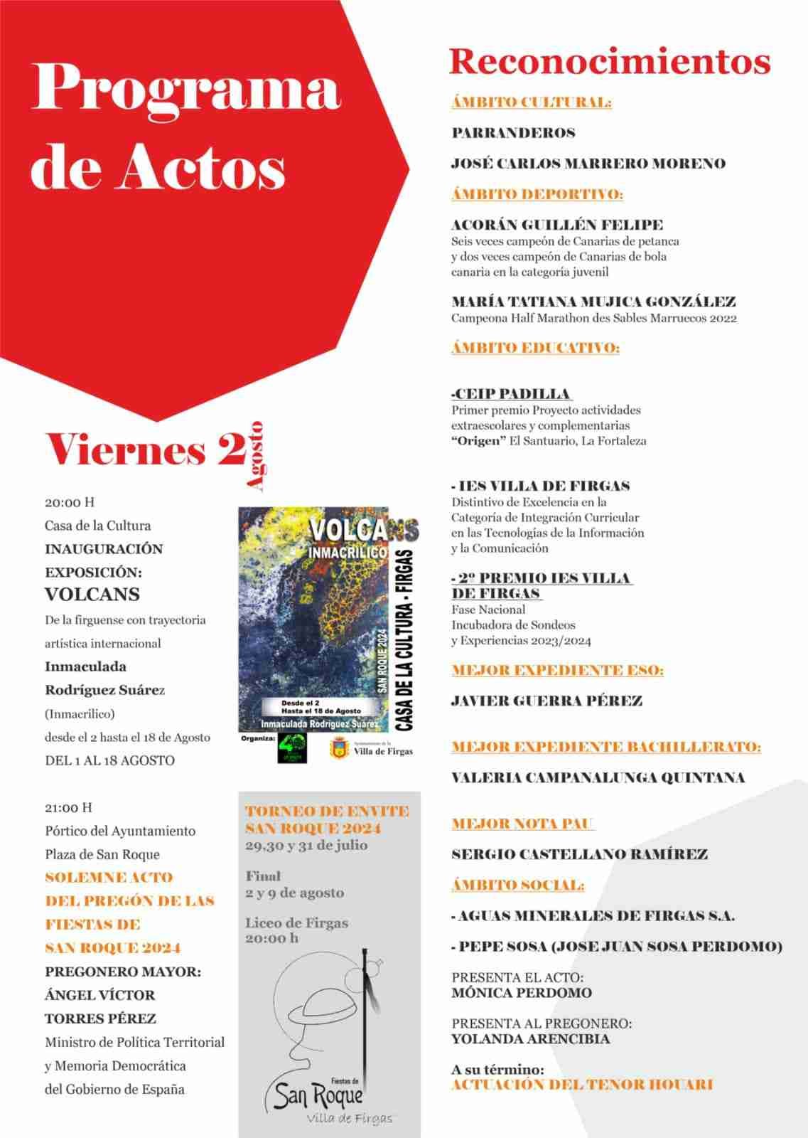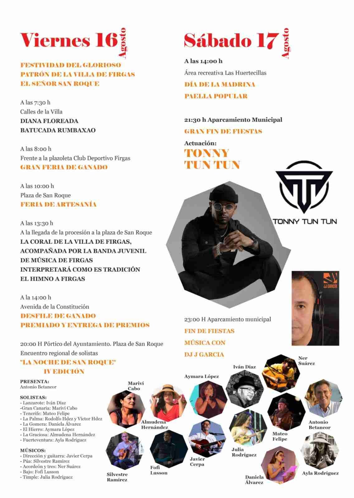 Patron Saint festivities of the municipality of Firgas in honour of San Roque (St. Roque) take place between 2-23 August 2024 (main festive days 2-17 August).