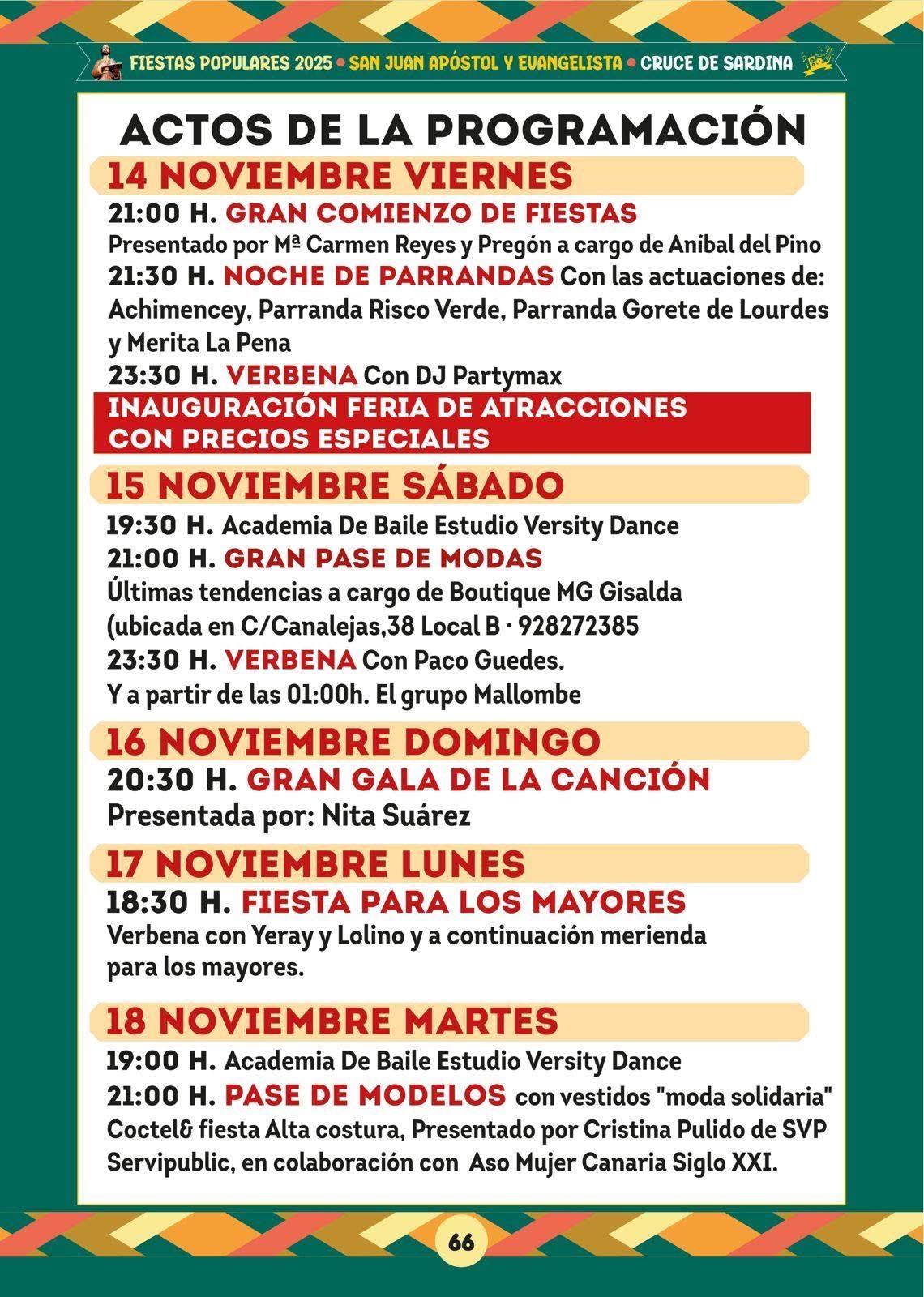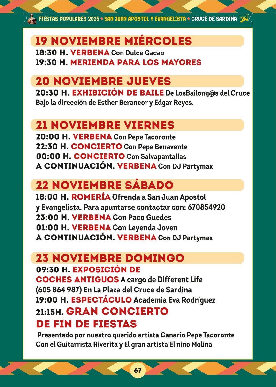 Cruce de Sardina in the municipality of Santa Lucía de Tirajana is celebrating the festivities in honour of San Juan Evangelista between 14-23 November 2025.