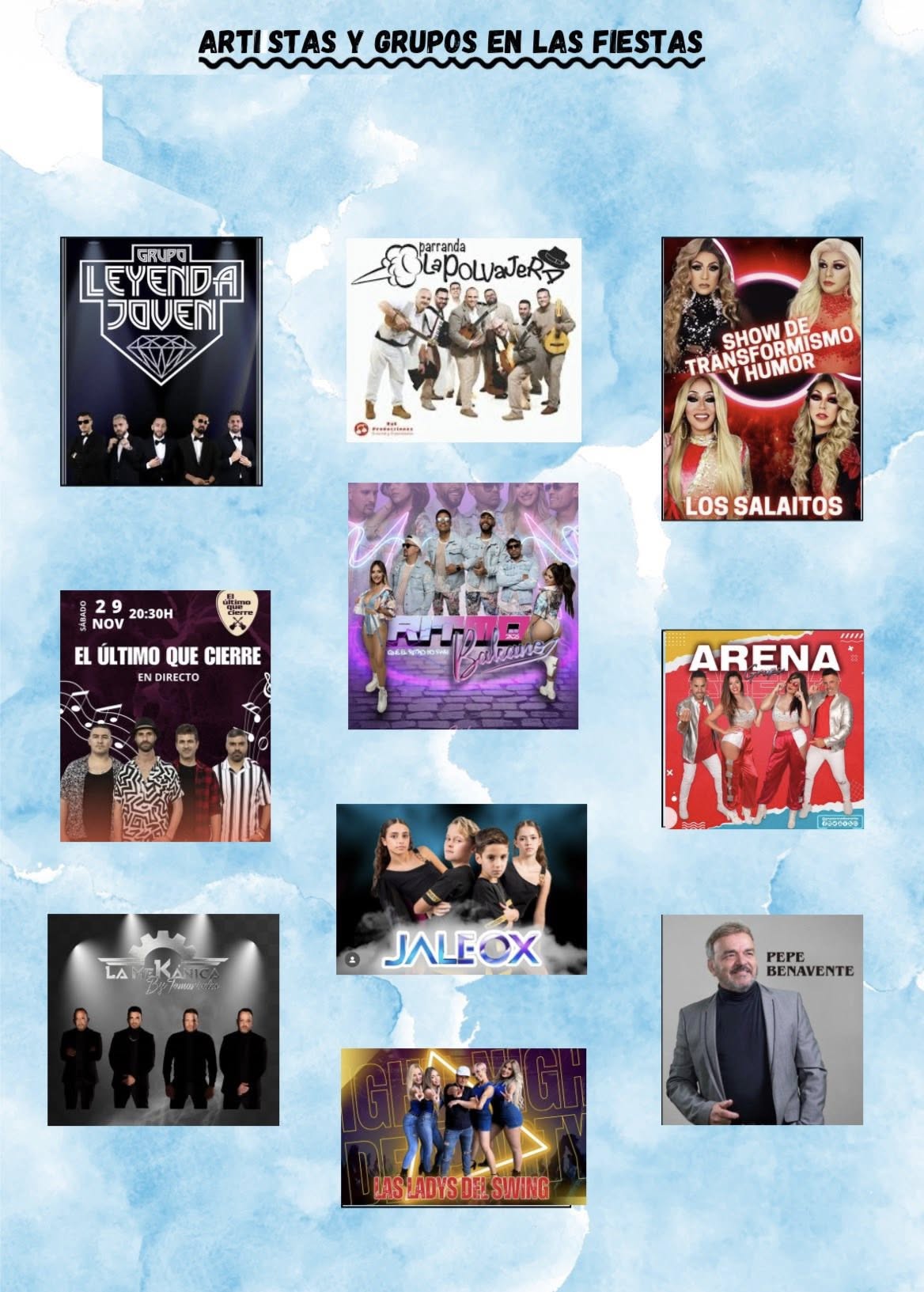22:00 Election gala of the Queen and Grand Dame of the festivities. This is followed by a lively street party with Ritmo Bakano