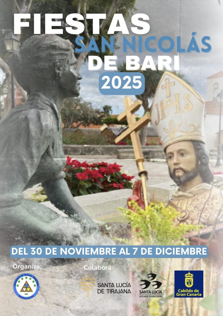 Sardina del Sur, in the municipality of Santa Lucía, celebrates its week-long festival in honour of Saint Nicholas of Bari. The Patron Saint festivities will take place between 30 November – 7 December 2025. The program includes activities for the whole family, from a senior citizens’ dance to children’s and youth activities, bingo, a baking contest, and various cultural events. The weekend will feature a parade with giant puppets, concerts, a procession, a community paella, and an open-air dance.