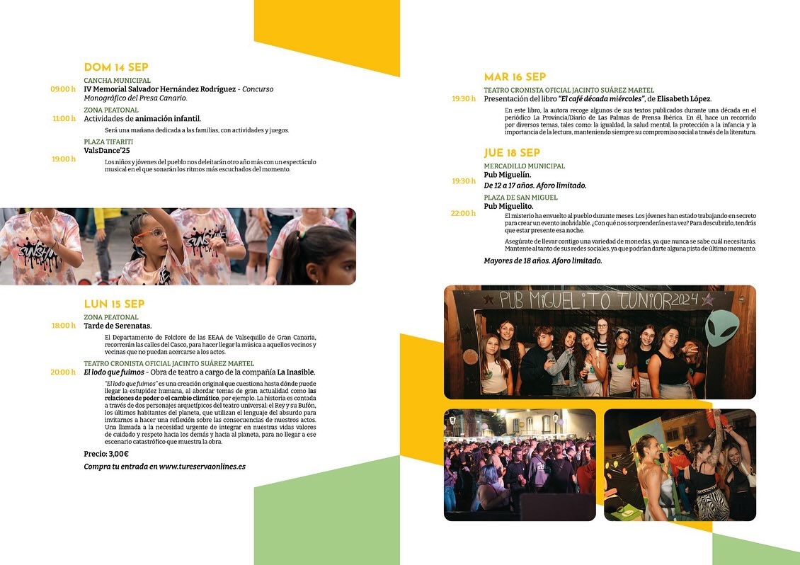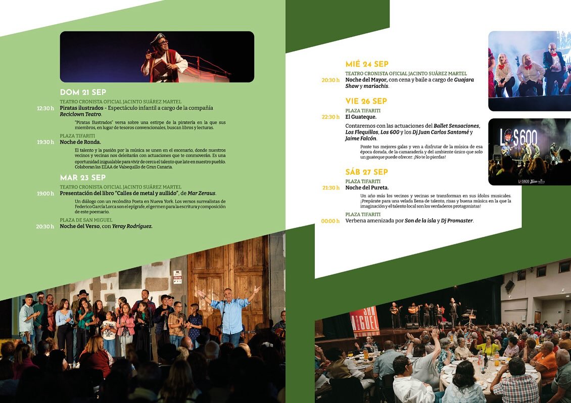 Some of the main events of the festivities are the Noche del PuretaPub Miguelito, the Suelta del Perro Maldito, the livestock fair, and the Romería, a pilgrimage offering. As was the case last year, the Plaza de Tifariti and the Plaza de San Miguel will host most of the concerts and events of the festivities.