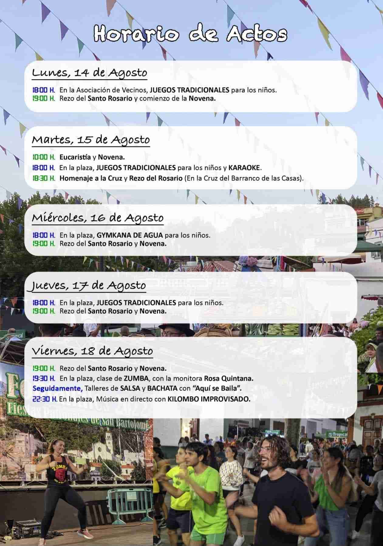 at 21:00 Mass, followed by a traditional ‘Los Romeros’ procession. at 22:30 Verbena, a street party with DJ Promaster and Armonía Show orchestra.