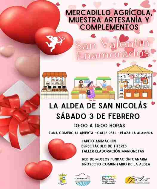 La Aldea will celebrate Valentine’s Day and the month of love in this edition of the agricultural market and the exhibition of crafts and accessories from 10:00 to 14:00 in the Open Commercial Zone and in the surrounding areas of Plaza de La Alameda.