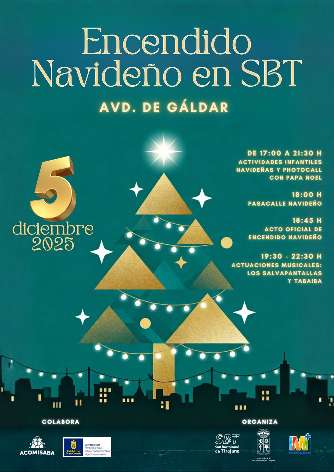 Christmas Lights Switch On in SBT – on Friday, 5 December at 18:45 on Avenida de GΓ‘ldar, in San Fernando de Maspalomas. An afternoon filled with magic, music, and activities for the whole family. 17:00-22:30