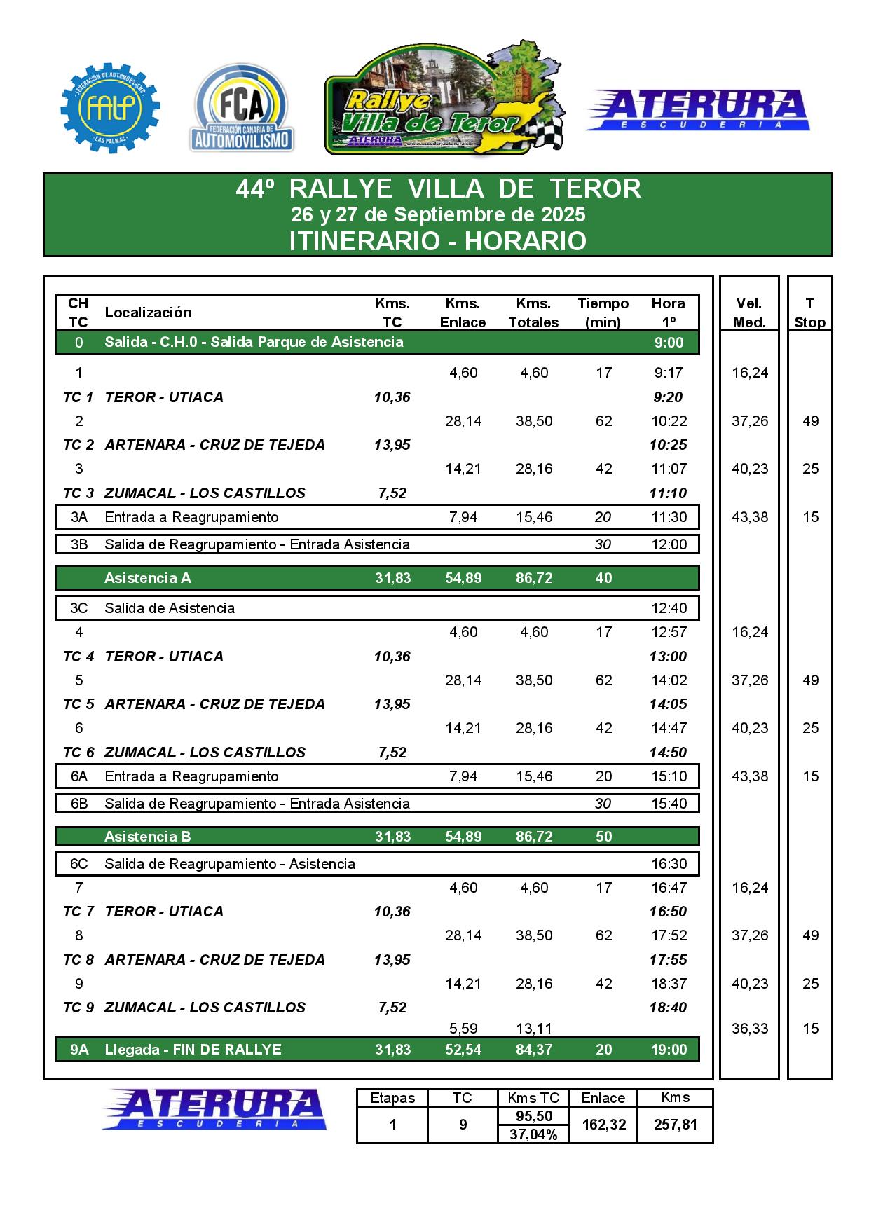 In total, the rally will have 95.50 kilometers of timed stages and 162.32 kilometers of liaison sections, totaling 257.81 kilometers. The first competitor will start the first stage at 9:20 a.m. on Saturday the 27th, and the race is expected to finish around 7:00 p.m.