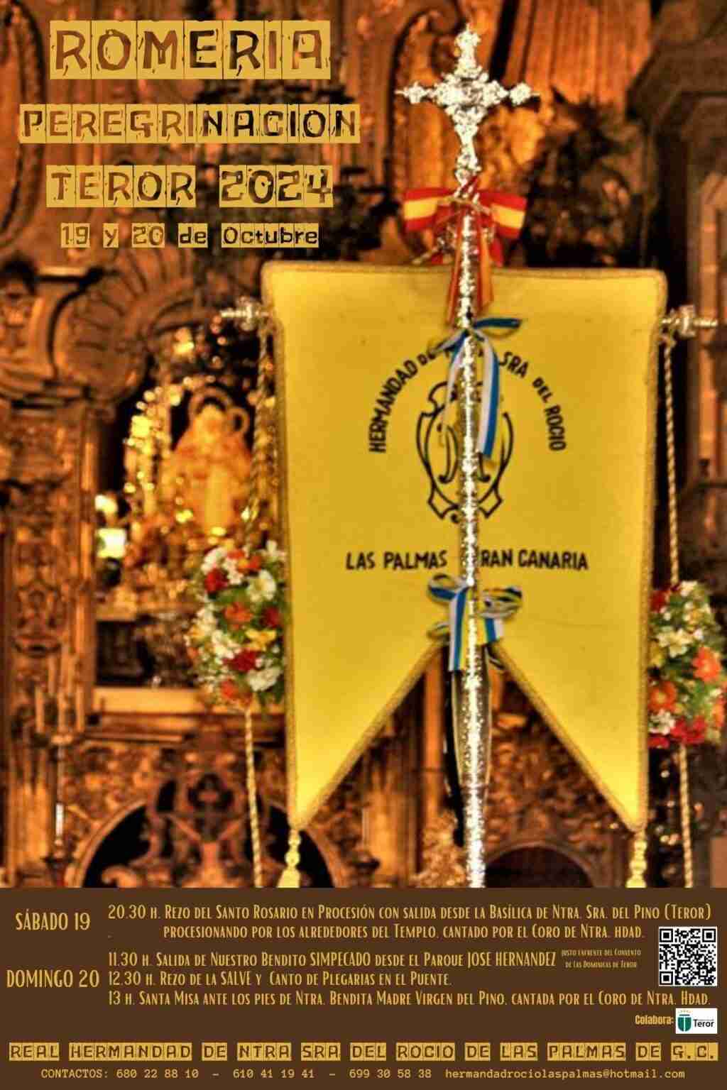The traditional Pilgrimage to Teror of the Royal Brotherhood of Our Lady of Rocío of Las Palmas de Gran Canaria will arrive on Sunday, 20 October in Teror, with the floral offering to the Virgin of the Pine and the presence of the Bendito Simpecado, Blessed Without Sin.