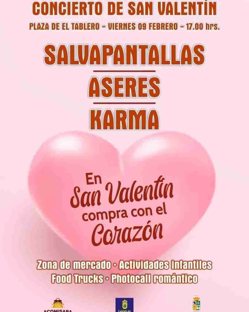 From 17:00 a market area, activities for children, food trucks, and a romantic photocall. Music performances by Salvapantallas, Aseres, and Karma.