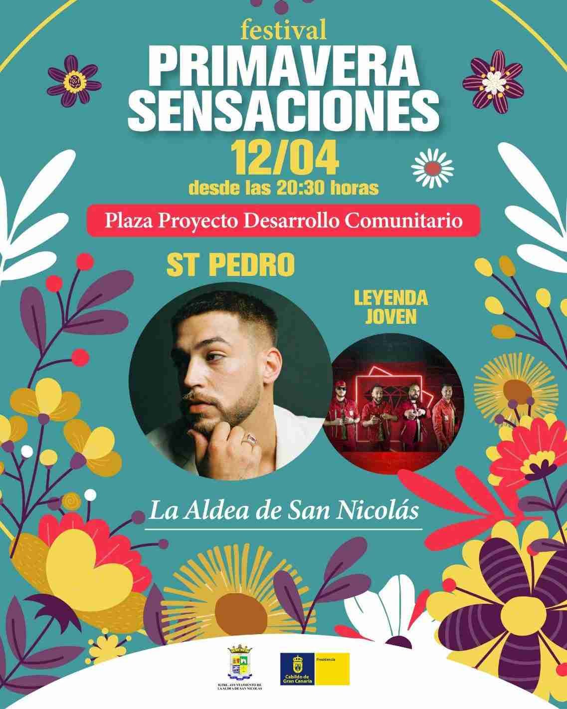 Singer St. Pedro, one of the most prominent emerging artists on the current music scene, will be the star of the 2025 Primavera de Sensaciones Festival, which will be held this Saturday, April 12, in La Aldea de San Nicolás. The Tenerife-born artist, known for his participation in La Voz and a finalist at the Benidorm Fest, will offer a highly anticipated concert at 22:00 in the Plaza Proyecto de Desarrollo Comunitario (Community Development Project Plaza), as part of a day packed with cultural activities, live music, trails, a market, and commercial activities.